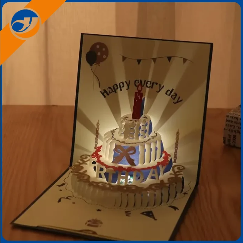Музика и светла: некиРођендан 3Д папирне картицеимају уграђену музичку репродукцију и осветљење. Када отворите картицу, срећна рођенданска песма ће се аутоматски играти и топле лампице ће се упалити, додајући атмосферу на прославу рођендана.