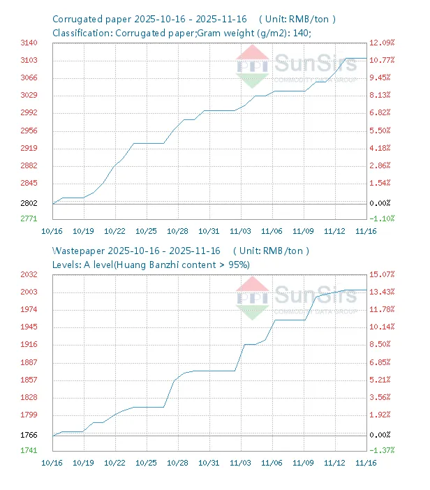 Тренд је вођен растом цена отпадног папира. Отпадни папир Хуанг Банзхи нивоа А, који се може похвалити чистоћом од преко 95% и који служи као кључна сировина за валовити папир, порастао је за 15,07% између 16. октобра и 16. новембра. Ово је појачало притисак на повећање трошкова наваловити папирзалихе.